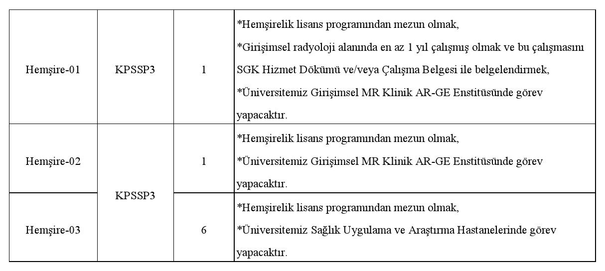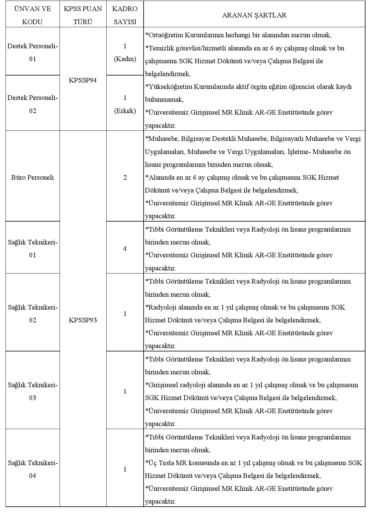 Üniversite yönetimi tarafından yapılan duyuruya göre, personel alımı; sağlık, teknik ve destek hizmetleri gibi farklı alanlarda gerçekleştirilecek. Adayların, belirtilen şartları taşıyarak başvurularını zamanında tamamlaması gerekiyor.