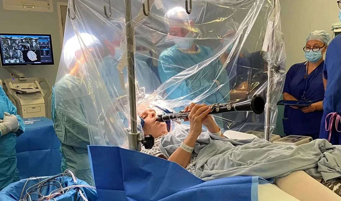 İngiltere’de 65 yaşındaki Denise Bacon, Parkinson hastalığına karşı yapılan beyin ameliyatı sırasında klarnet çalarak tıp dünyasında unutulmaz bir an yaşattı. King’s College London’dan beyin cerrahı Prof. Keyoumars Ashkan’ın yönettiği operasyon, hastanın uyanık halde tutulduğu dört saatlik bir süreçte başarıyla tamamlandı.