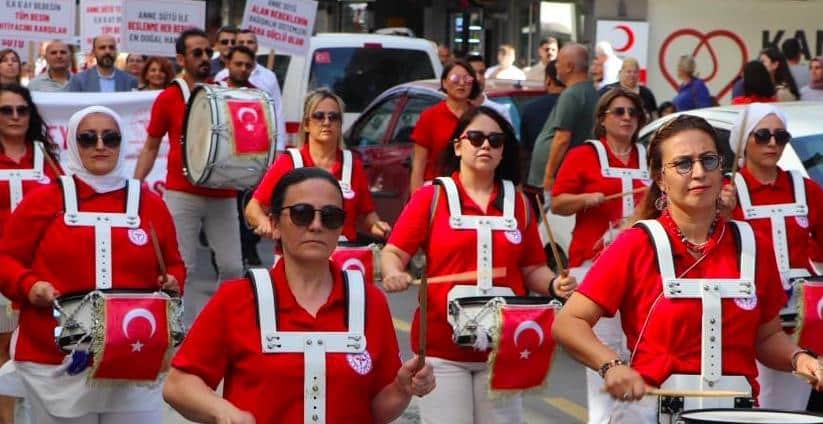 Sağlık çalışanları, farkındalık oluşturmak için yürüyüş esnasında tüberküloz, tansiyon ve anne sütünün öneminin anlatıldığı pankartlar da taşıdı.